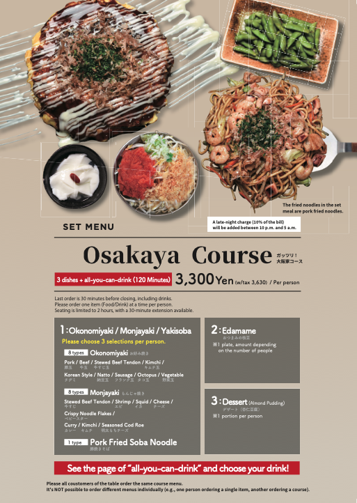 Welcome to Osakaya, a culinary gem nestled in the heart of Kabukicho, Tokyo. This 24-hour eatery specializes in traditional Japanese dishes, particularly okonomiyaki and monjayaki, two beloved comfort foods that are sure to tantalize your taste buds.